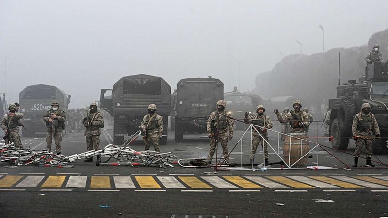 وأعلنت المنظمة إرسالها "قوات حفظ السلام الجماعية إلى جمهورية كازاخستان لفترة محدودة، بهدف المساعدة في حماية المنشآت الحكومية والعسكرية المهمة، ومساعدة قوات حفظ القانون في ضبط الوضع وإعادة النظام العام والاستقرار".