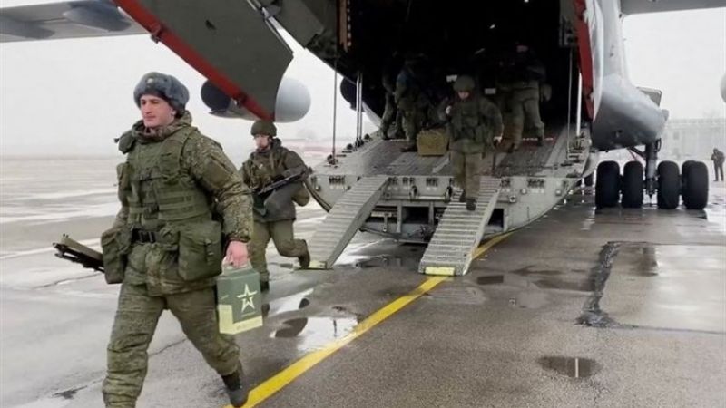 غادرت قوات حفظ السلام التابعة لمنظمة معاهدة الأمن الجماعي من أرمينيا وطاجيكستان، كازاخستان على متن أربع طائرات نقل عسكرية روسية .