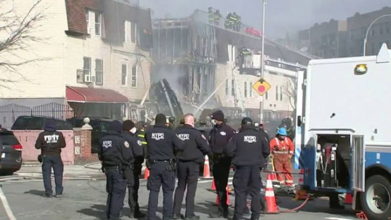 وأفادت تقارير إعلامية بأن انفجارا غازيا أدى إلى نشوب حريق وانهيار المبنى في شارع فوكس في برونكس.
