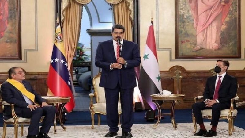 وخلال حفل وداع أقامه مادورو للسفير السوري لدى فنزويلا بمناسبة انتهاء مهامه، قال إن تلك المأثرة التي قادها الأسد، "نصر حققه بفضل مساعدة حلفائه في العالم مثل روسيا والصين وإيران والشعوب الأخرى المعادية للإمبريالية، وبدعم فنزويلا المعنوي والروحي".
