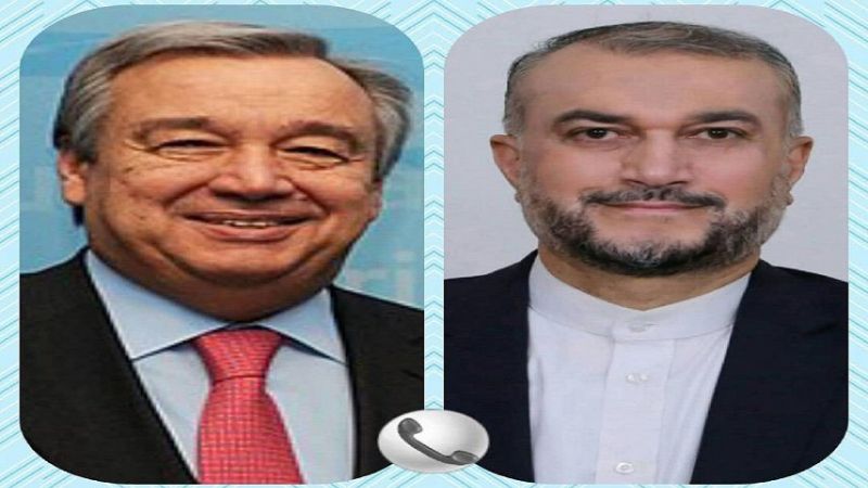 بحث وزير الخارجية الايراني حسين أمير عبد اللهيان في اتصال هاتفي مع الأمين العام للأمم المتحدة انتونيو غوتيريش ملفات اليمن وأفغانستان والنووي الايراني.