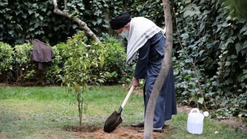 غرس سماحة الإمام السيد علي الخامنئي شتلتين من الفاكهة في حديقة مكتبه بمناسبة أسبوع المصادر الطبيعية ويوم الشجرة، مؤكدًا على ضرورة أن يؤخذ تطوير الطاقة النظيفة في إيران على محمل الجد، قائلًا "إن تطوير الطاقة غير الأحفورية مثل الطاقة النووية التي يتزايد استخدامها في العالم وتتجه دول منطقتنا نحوها، وكذلك طاقة الرياح والطاقة الشمسية يجب أن تؤخذ على محمل الجد".