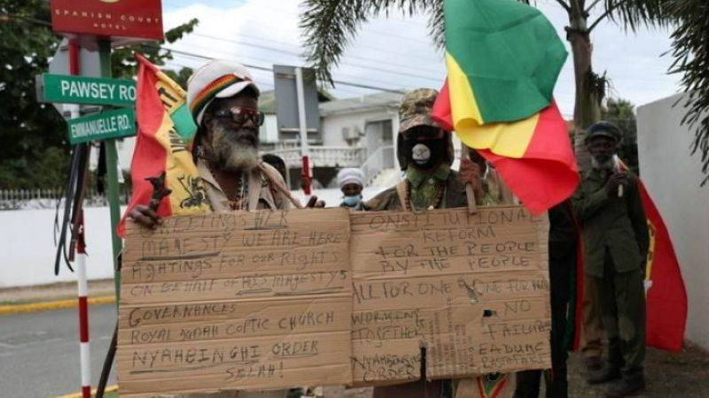 وتجمع العشرات يوم الثلاثاء أمام المفوضية السامية البريطانية في كينجستون وأنشدوا ورفعوا لافتات تطالب بريطانيا بالاعتذار عن العبودية.