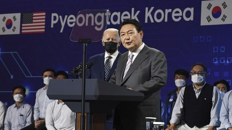 أدلى يون بهذا التصريح مخاطبا نظيره الأمريكي جو بايدن الذي يزور سيئول حاليا والذي تفقد معه مصنع "سامسانغ" للالكترونيات في بينغتيك أمس، حسبما ذكر مسؤول في الرئاسة الكورية الجنوبية للصحفيين اليوم السبت، مضيفا أن بايدن "عبر عن توافقه" مع كلام يون.