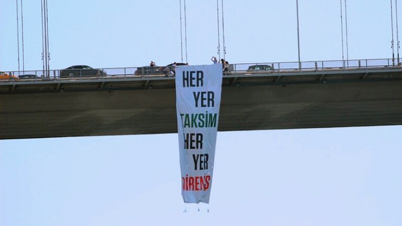 في الذكرى التاسعة لاحتجاجات جيزي، علق رئيس حزب العمال إركان باش، والنائبان عن الحزب أحمد شيك وسيرا كاديجيل، لافتة كتب عليها "تقسيم في كل مكان، مقاومة في كل مكان" على جسر شهداء 15 يوليو.