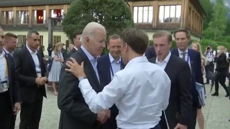 ولحق ماكرون بالرئيس الأمريكي جو بايدن خلال تنقلهما على هامش قمة مجموعة السبع التي ترأسها ألمانيا في الفترة من 26 إلى 28 يونيو في بافاريا ليقول له: