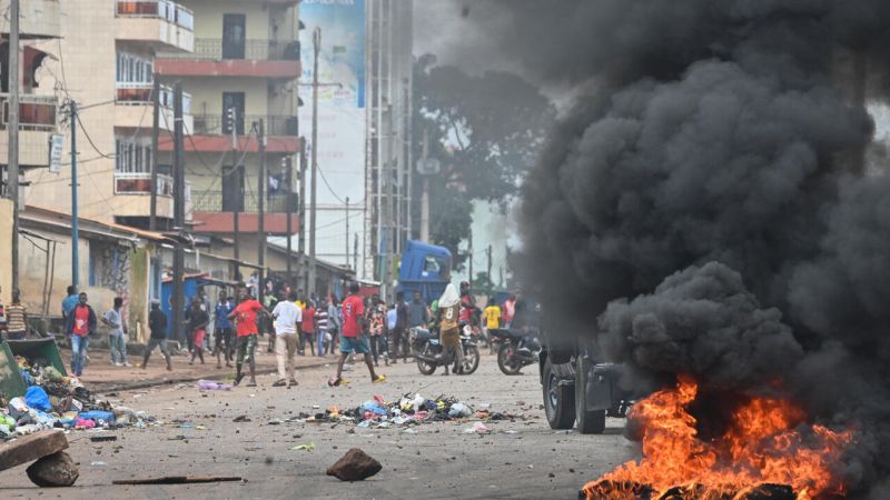 واندلعت الصدامات بين الشرطة وشبان في كوناكري صباح أمس الجمعة، قبل أن تتوقف ظهرا لتستأنف في وقت لاحق، لا سيما في بامبيتو وسونفونيا وعلى طريق لو برينس السريع، وهي مناطق تقع في الضواحي، بحسب صحافي من فرانس برس وشهود.