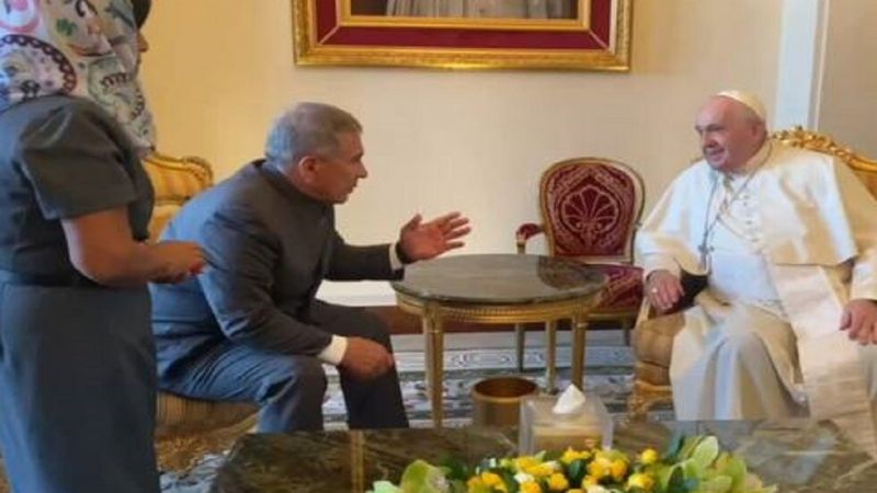 وقال رئيس تتارستان: "تحدثنا في الصباح مع البابا فرنسيس. واستذكرت مثال تتارستان، كيف عاشت جميع الجنسيات في بلدنا لقرون عديدة في وئام وانسجام.. إنه لشيء معنوي أن تحتفل بلادنا اليوم بيوم الوحدة الوطنية".