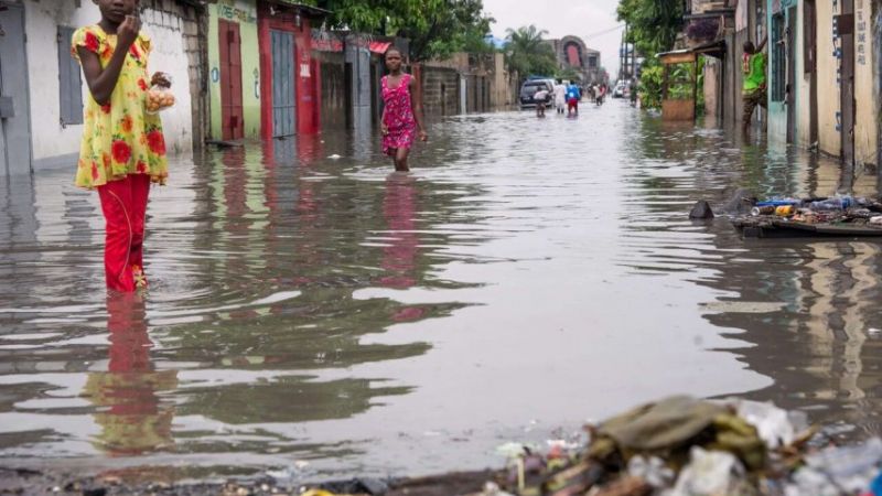 والعديد من المساكن في كينشاسا منازل متداعية بنيت على منحدرات معرضة لخطر الفيضانات، فيما شبكات المجاري والصرف الصحي في المدينة لا تعمل بشكل جيد.