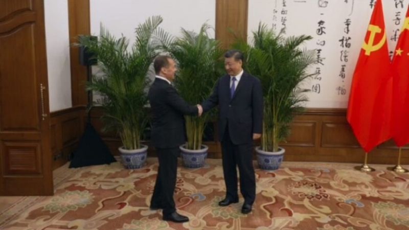 زار نائب رئيس مجلس الأمن الروسي دميتري مدفيديف العاصمة الصينية بكين، حيث التقى الرئيس شي جين بينغ وسلمه رسالة من الرئيس فلاديمير بوتين.