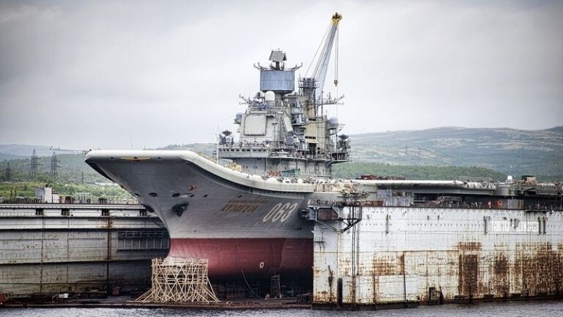 وتخضع حاملة الطائرات حاليا للإصلاح والتحديث في مصنع السفن الـ35 وذلك بعد أن تم نقله من المصنع الـ82 في ميناء مورمانسك في شمال غرب روسيا حيث واجهت حادثا بحريا.