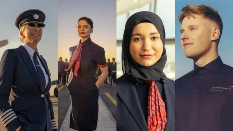 كشفت الخطوط الجوية البريطانية النقاب عن مجموعة أزياء جديدة تسمح للمضيفات بارتداء الجمبسوت والحجاب ضمن طاقم الطائرة.
