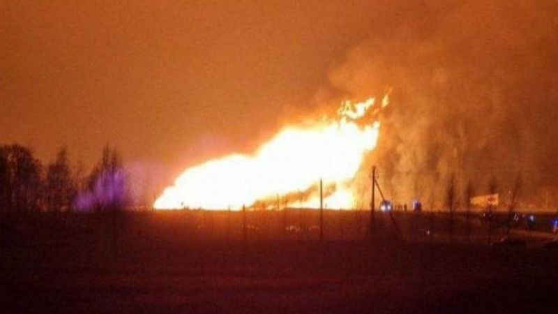 وبثت لقطات لحريق كبير في موقعين على خط أنابيب يمر عبر قرية توبوغازي المحلية. هناك حوالي 3 كيلومترات بين الموقعين. يشار إلى أن الانفجارات والحرائق اندلعت بعد زلزال قوي في محافظة كهرمان مرعش.