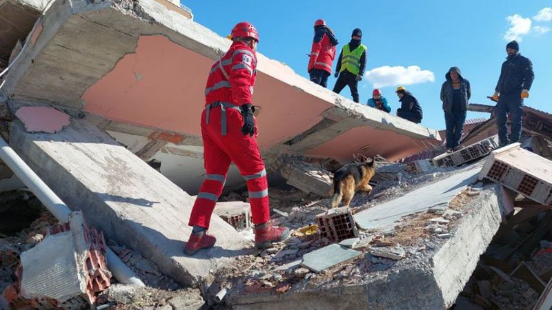 وفجر الإثنين، ضرب زلزال جنوب تركيا وشمال سوريا بلغت قوته 7.7 درجات، أعقبه آخر بعد ساعات بقوة 7.6 درجات ومئات الهزات الارتدادية العنيفة، ما خلف خسائر كبيرة بالأرواح والممتلكات في البلدين.