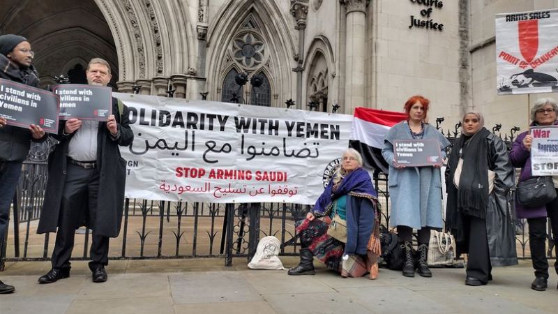 نظم نشطاء بريطانيون وقفة أمام مبنى المحكمة العليا في لندن للمطالبة بوقف تسليح السعودية بسبب حرب اليمن، وإنهاء مبيعات الأسلحة البريطانية التي تغذي الحرب لمنع المزيد من القتل والدمار الذي شهدناه في السنوات الثمان الماضية.