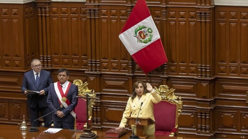 وتولت دينا بولوارت رئاسة بيرو في 7 ديسمبر الماضي بعد أن أطاح البرلمان بالرئيس آنذاك بيدرو كاستيلو الذي سجن بعد محاولته حل الكونغرس لتجنب التصويت على إقالته من منصبه.