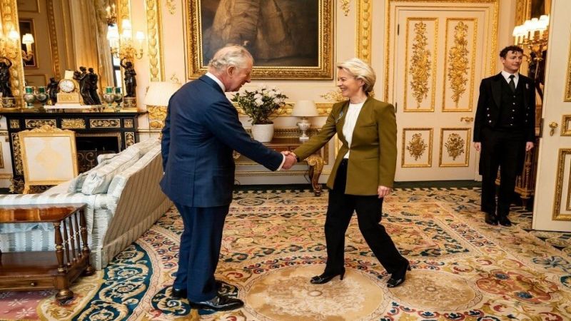 أثار اجتماع رئيسة المفوضية الأوروبية أورسولا فون دير لاين، مع الملك تشارلز الثالث، انتقادات من السياسيين البريطانيين مؤكدين أن الاجتماع يتعارض مع الدستور.