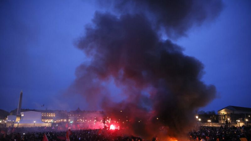 وتجمع الآلاف احتجاجا أمس الخميس في ساحة الكونكورد، التي تواجه مبنى الجمعية الوطنية. مع حلول الليل، هاجم ضباط الشرطة المتظاهرين في موجات لتطهير المكان. ثم تحركت مجموعات صغيرة عبر الشوارع المجاورة في شارع الشانزليزيه الأنيق، ليشعلوا حرائق في الشوارع.