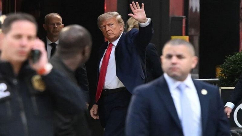 وكانت لقطات تلفزيونية أظهرت موكبا يغادر منزل ترامب في مارالاغو عند الساعة 12:20 (16:20 بتوقيت غرينتش)، للتوجه إلى نيويورك، المدينة التي صنع فيها الرئيس السابق اسمه، وحيث يأمل في استغلال مثوله أمام المحكمة لاستثارة حملة تأييد لترشحه للانتخابات الرئاسية في عام 2024.