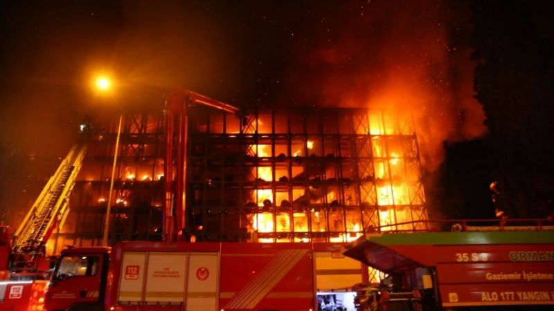 أصيب 7 أشخاص أمس الخميس جراء حريق ضخم اندلع في مجمع سكني فاخر بمدينة إزمير التركية.
