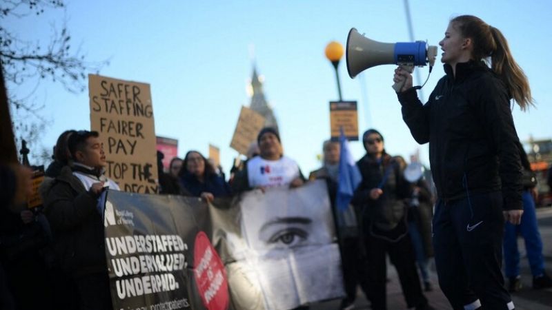 ويأتي ذلك مع بدء إضراب عشرات الآلاف من الممرضين في إنجلترا لمدة ثمان وعشرين ساعة، اعتبارا من مساء الأحد، بعد رفض النقابة عرضا حكوميا لتسوية النزاع بشأن الأجور.