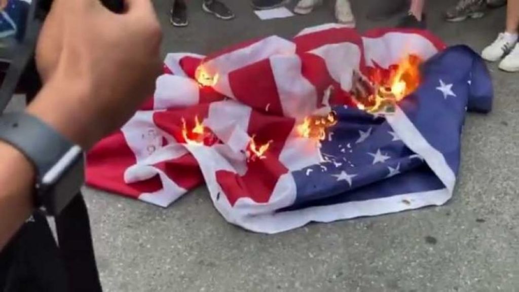 الثبات ـ دولي قام متظاهرون بحرق العلم الأمريكي بالقرب من ...
