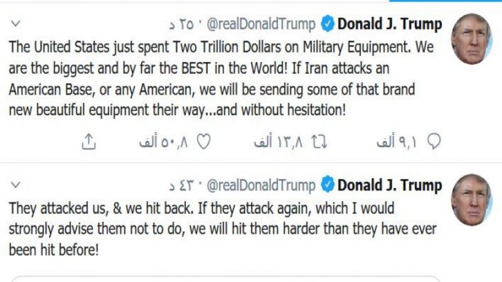 الثبات ـ دولي هدد الارهابي الرئيس الأمريكي دونالد ترامب إيران ...